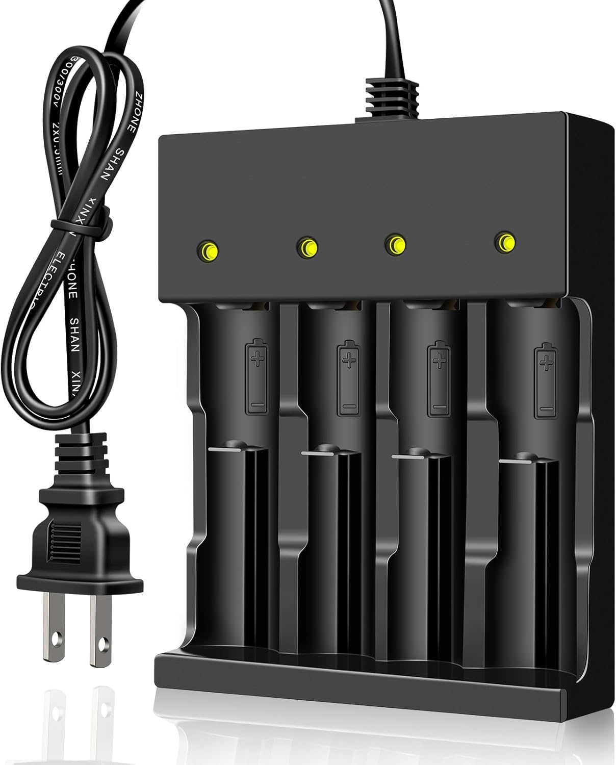 18650 Battery Charger 4 Bay Smart Universal Charger for 3.7V Rechargeable Lithium Li ion Batteries Compatible 18650 26650 21700 10400 14500 16340 16650...