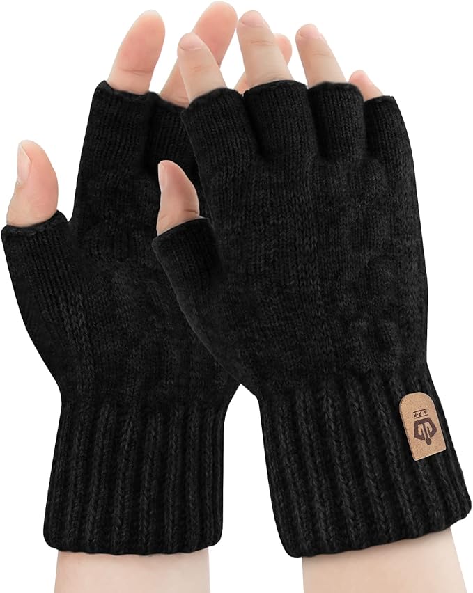 Fingerless Gloves Winter Warm Knitted Stretchy Half Finger Gloves Running Driving Cycling Working for Men and Women