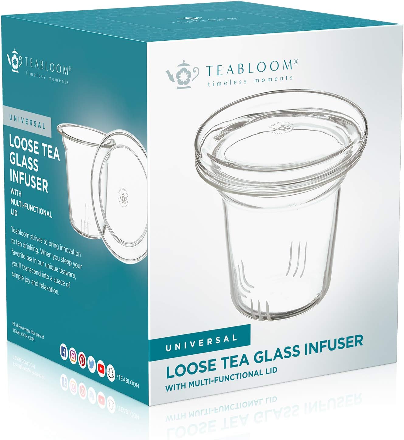 Teabloom Universal Glass Tea Infuser with Dual-Purpose Lid/Coaster – Hygienic, Non-Toxic Glass Filter for Loose Tea Leaves – Lead-Free & Cadmium-Free –...