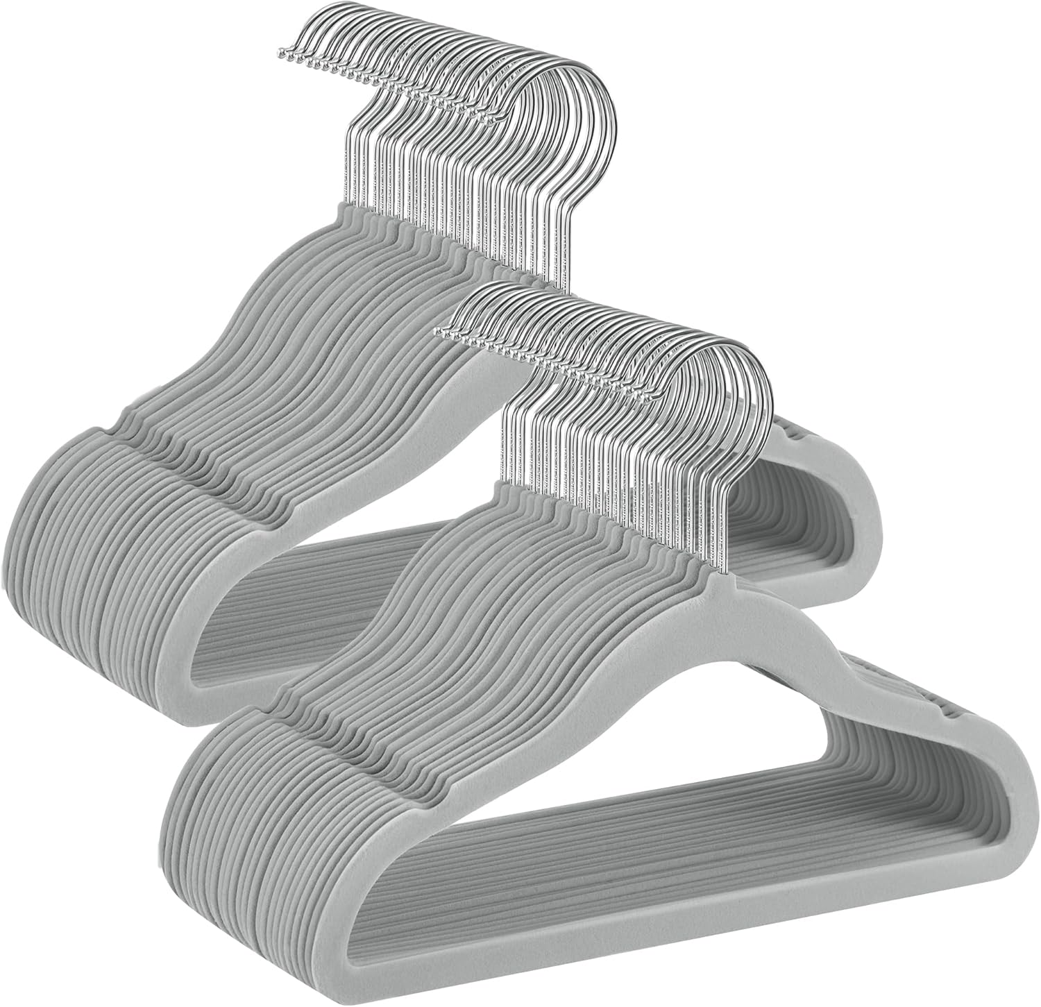 SONGMICS Baby Hangers 50 Pack, Kids Hangers for Closet, 11.8 x 8.1 Inches, Silver 360° Swivel Hooks, Space-Saving Clothes Hangers, Velvet Hangers for...